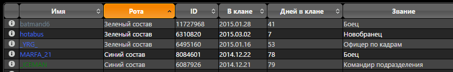 Распределение клана по ротам с сайта статистики.