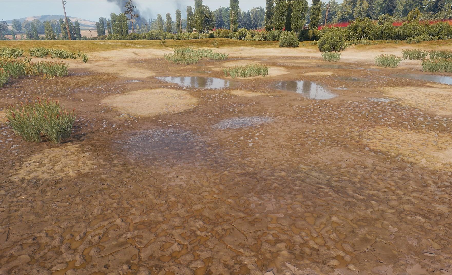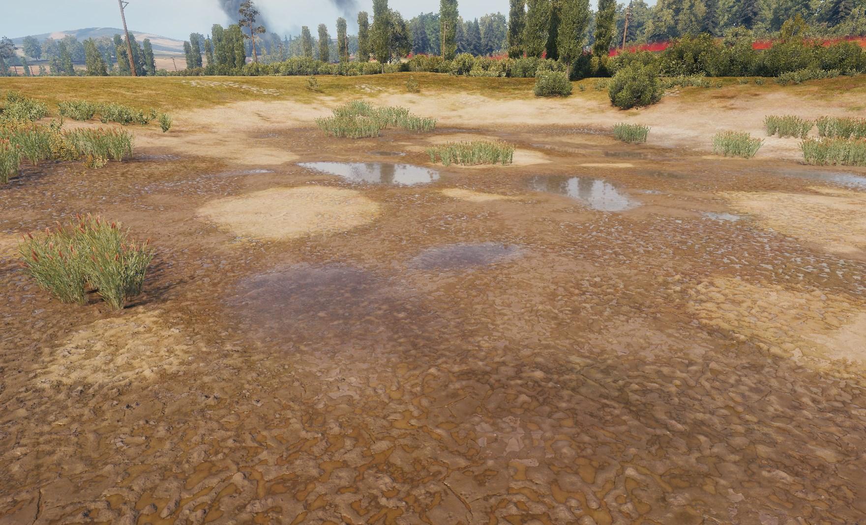 Немного утоплен рельеф в данной болотистой местности, что позволило организовать безопасную область от прострела со стороны возвышенности на аллее.
