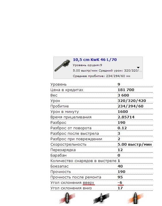 Нашел небольшую ошибку в отображении параметров УВН пушки Lowe. Угол склонения вверх: -6, а Угол склонения вниз: 17. Хотя значения должны быть наоборот: -6 вниз, и 17 вверх.
