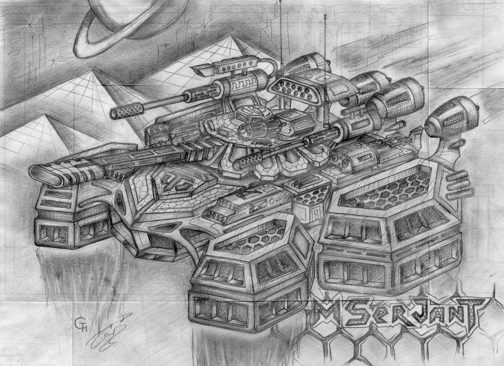Основная идея концепта недалёкого будущего в том что, это беспилотная автономная боевая система. В данном случае это разведывательный беспилотный дрон. Главная конструктивная особенность это расположение шести электродвигателей прямо в шасси машины, ось колеса является статором, а само колесо ротором. В режиме разведки дрон передвигается на электротяге практически без шумно, питание поступает из полимерный батарей занимающих основное пространство корпуса. При выезде из зоны ведения разведки дрон запускает небольшой газотурбинный двигатель для подзарядки батарей. Также присутствует система рекуперации для сохранения энергии при спусках со склонов и торможении, в следствии чего достигается большая дальность действия. Шасси устроено как система обеспечивающая максимальную проходимость. Возможность изменять клиренс в больших приделах позволяют дрону либо становиться практически незаметным сливаясь с местностью либо вести разведку из за укрытия подняв средства разведки на максимальную высоту, оставаясь при этом не заметным. Боевые системы, системы связи, навигации и разведки комплектуются модульной башней, замена которой происходит на базе в зависимости от характера выполняемой задачи.