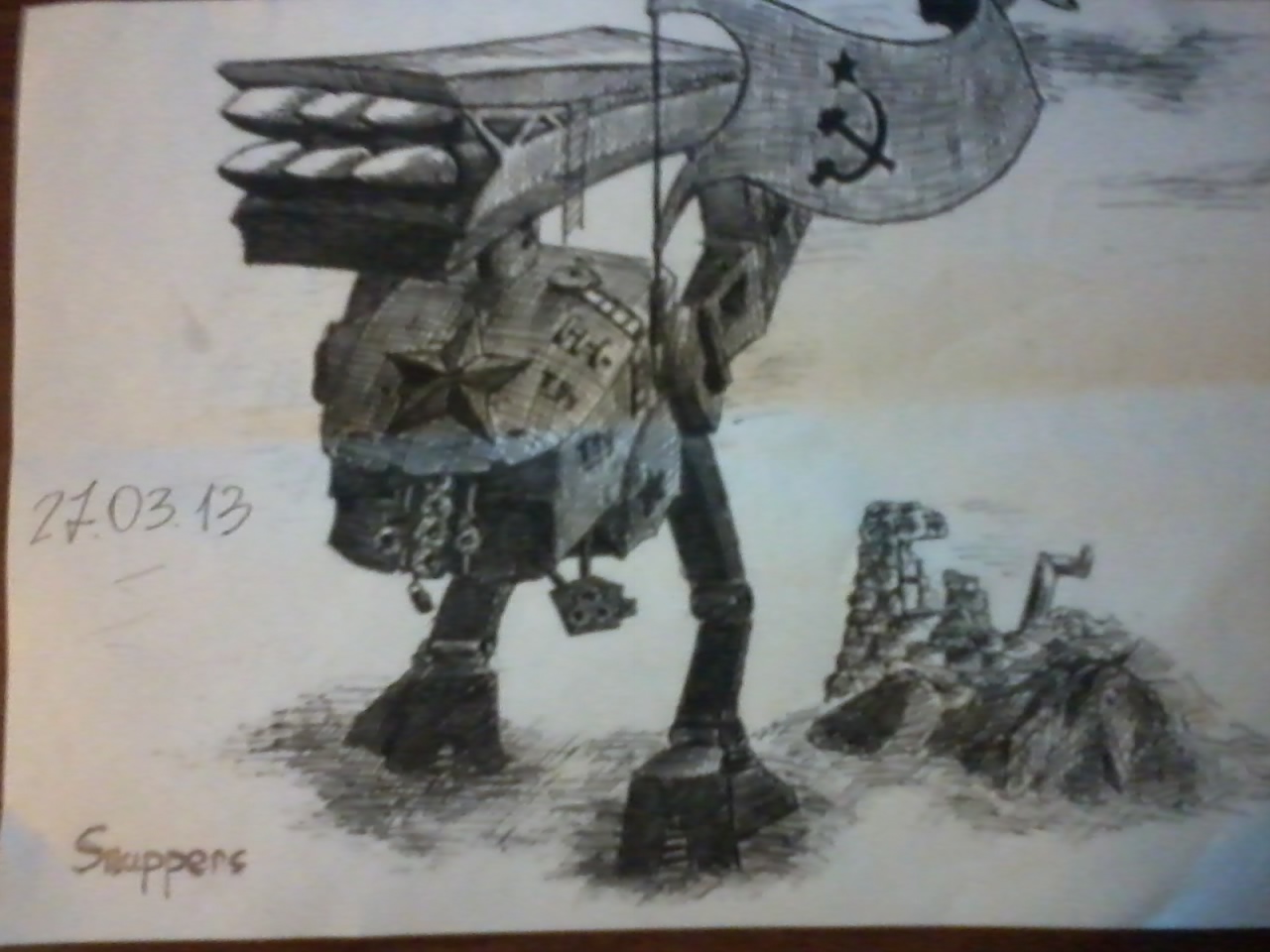 7)Шарообразная задняя часть корпуса, по которой перемещается второе орудие(4). Это дает возможность танку стрелять одновременно в разные стороны