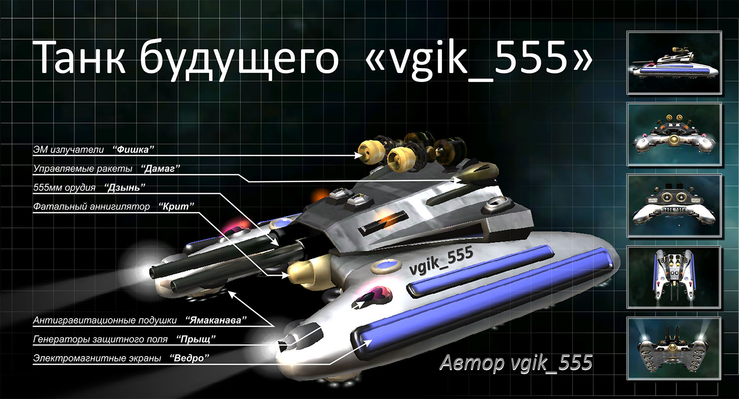 ААА ужас! написано же в правилах СОЗДАТЬ СВОИ танк а не копировать детали! И не засоряй плиз раздел повторными фото!