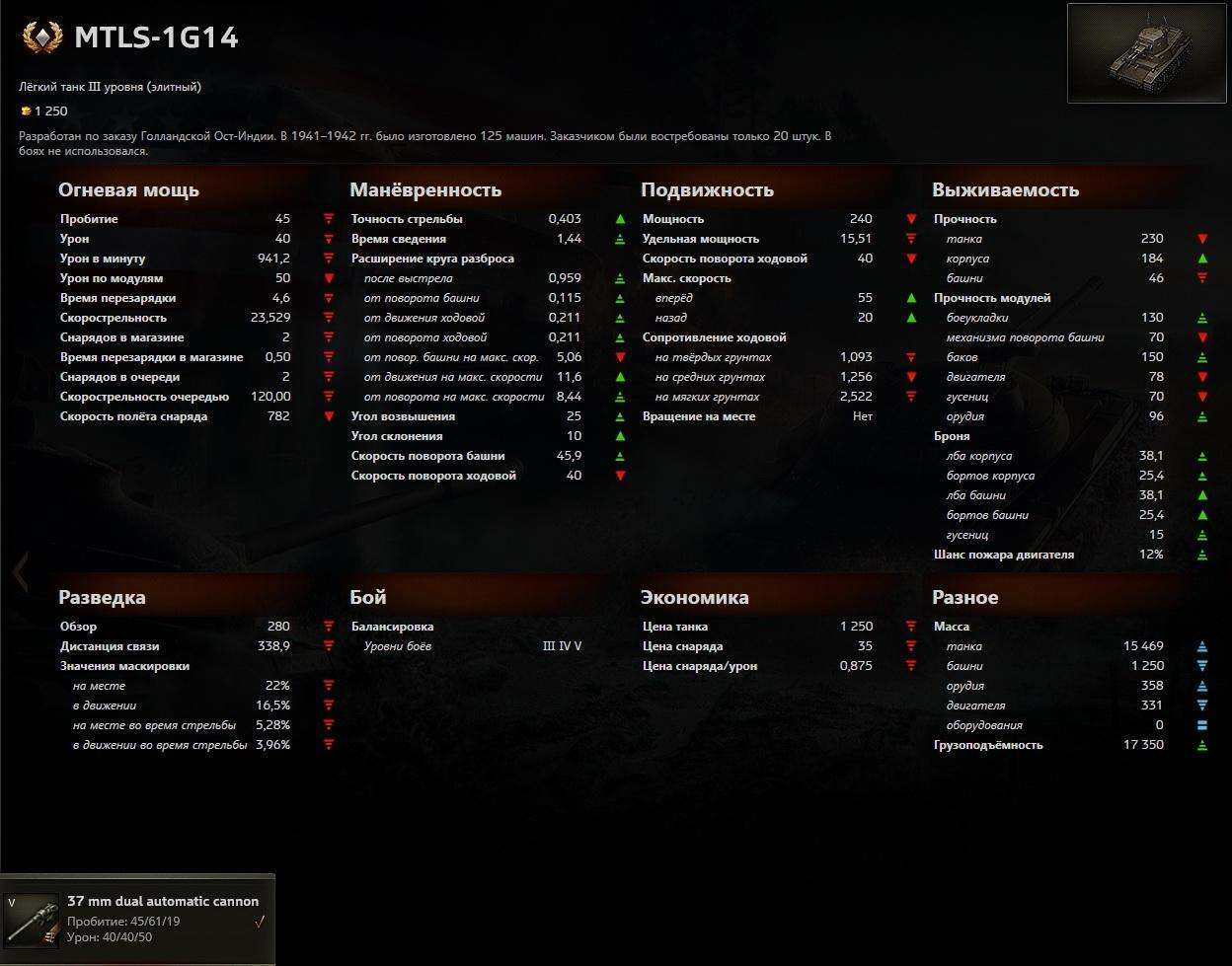 Сейчас MTLS-1G14 выходит на супертест: его характеристики будут скорректированы с учётом современных условий случайных боёв. Планируется сделать весёлую и подвижную машину, слегка похожую на «Тетрарх». Её нельзя будет назвать бронированной, но ей это и не нужно: её задача — кружить по полю боя и задорно раздавать «двушечки» зазевавшимся врагам.