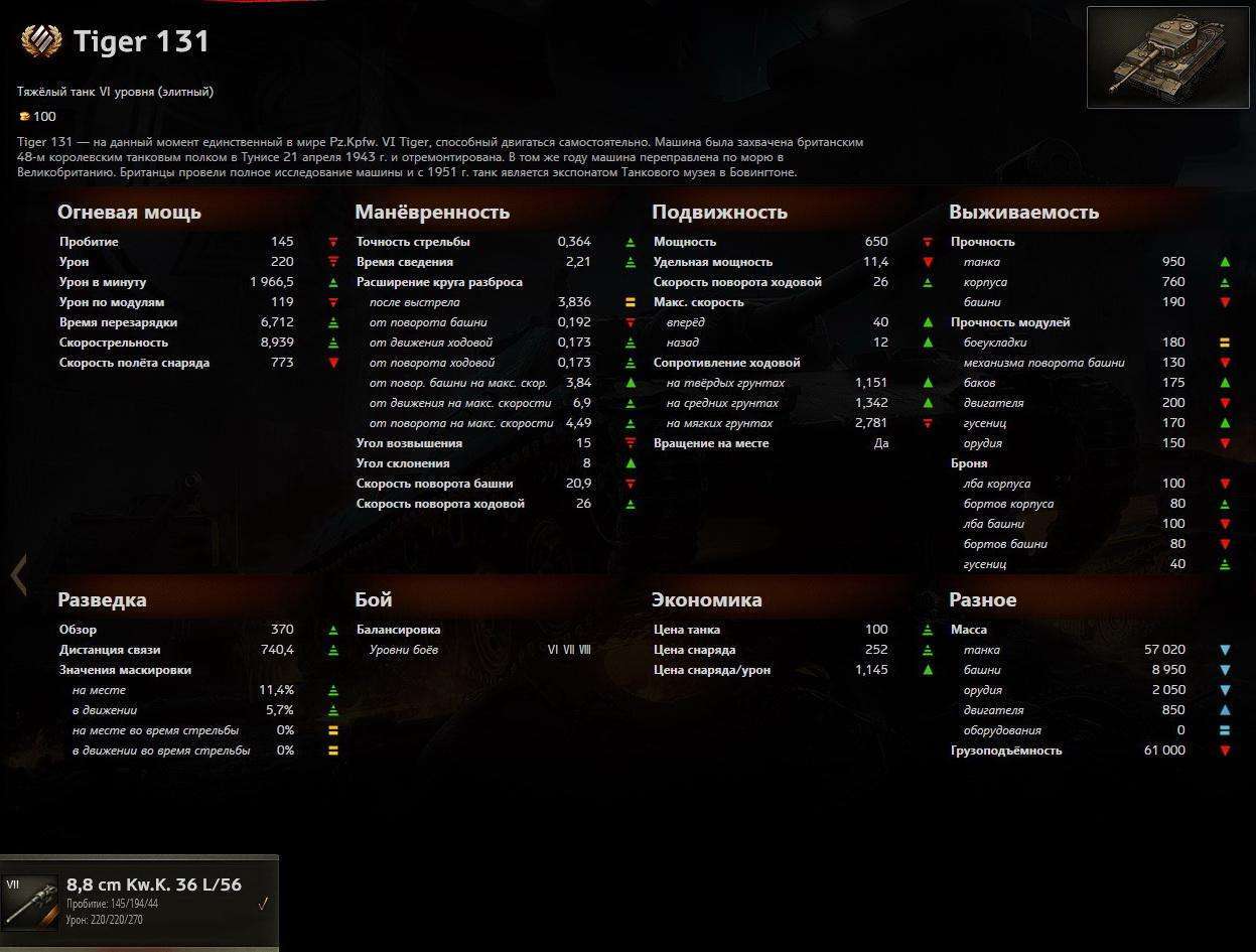 Tiger 131 — на данный момент единственный в мире Pz.Kpfw. VI Tiger, способный двигаться самостоятельно. Машина была захвачена британским 48-м королевским танковым полком в Тунисе 21 апреля 1943 г. и отремонтирована. В том же году машина переправлена по морю в Великобританию. Британцы провели полное исследование машины и с 1951 г. танк является экспонатом Танкового музея в Бовингтоне.
