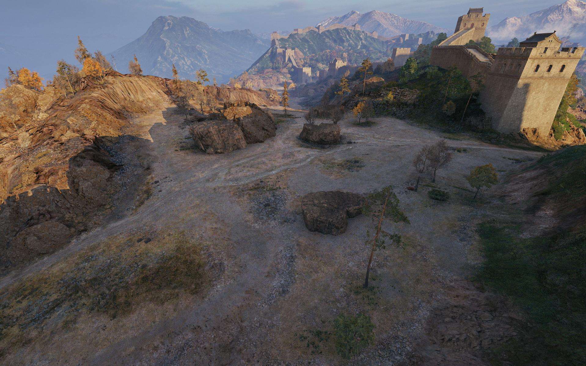 Это локация с чётко обозначенными направлениями для разных типов техники, разделённая надвое холмами и Великой Китайской стеной. «Карта коридорная», — скажете вы. И будете совершенно правы. Но мы позаботились обо всех типах техники: