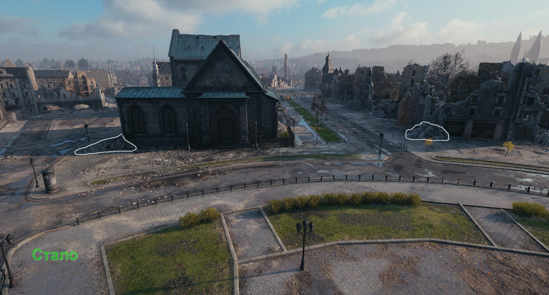 На месте цельного здания храма появился дополнительный проезд с позициями верхней команды. Он предоставляет новые возможности для обороняющихся сдерживать поджавшихся противников на площади и перестреливаться с некоторыми более дальними позициями.