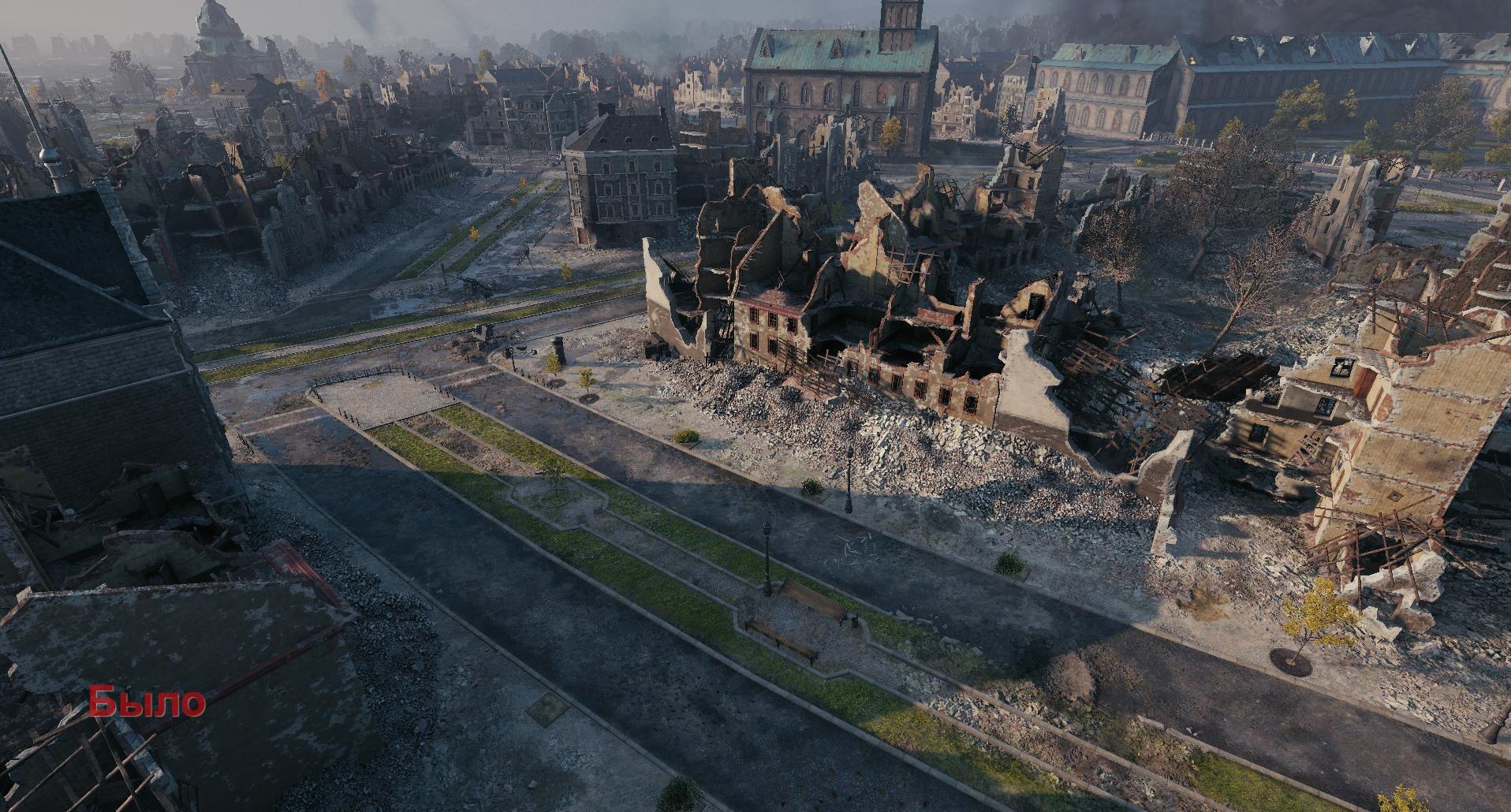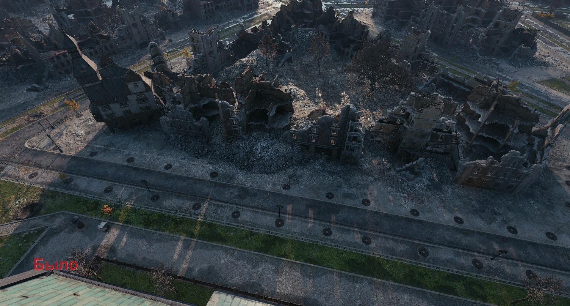 Открыт квартал , создающий дополнительную вариативность разъездов, отступления и позиций для САУ верхней команды. Схожие позиции есть в открытых кварталах у нижней команды. Плюс за счёт этого появилось дополнительное игровое пространство и исчез архаичный тупик в верхнем левом углу карты.