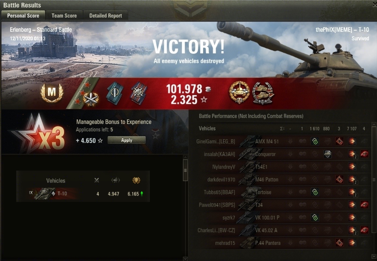 ApocalipticSnowflake: TD mają to do siebie że ich mnożnik expa jest dość niski za dmg ale za to ma gigantyczne skoki z fragami. Bardzo możliwe że te 13 asysty to był czołg przeciwnika zabity poprzez spota tego gracza. To też daje sporo expa.
