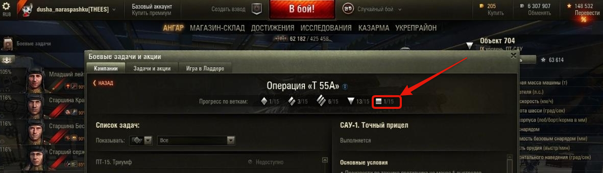 Просмотр сообщенияAlGreddy (22 Апр 2016 - 09:33) писал: Тут у каждого своя правда и видение сложности задач. 1) Я ПТ-15 прошел на об.268 за 14 боев. Правда без отличия, добрать пятого врага мне не дали, хотя просил. 2) СТ-15 прошел за 2 боя (в первом не хватило 600 урона по ПТ) на Leopard 1. Невероятным образом во втором бою у противника было 8 пт и карта Рудники, попал на гору и алга! с отличием. 3) ТТ-15 прошел за 5 боев (специально качал VK 4502 P ausf.B ради ТТ-12, на тт-12 ушло 18 боев, заодно решил попробовать ТТ-15 прогнать) с отличием. 4) ЛТ-15 тут я тупо делал ололо раш, брал разведчика, пока не выпадет карта нужная, на 32ой бой выполнил на огненной дуге. Не знал ,что выполнил, поехал жестко светить и убился. Без отличия 5) А вот САУ-15 для меня было самой невероятной болью, рука уже пятый день синяя, с гематомой от столкновений со столом и стеной, не знаю уж что там соседи думают. Шанс выполнения был бой через бой, и регулярно не хватало от 117 до 13 ед. урона. Либо накидывал 3600, но опыт съедал какой-нибудь лт, который выдал 1000 урона и 500 насветил. Выполнил на 79ый бой, ощущение унижения.