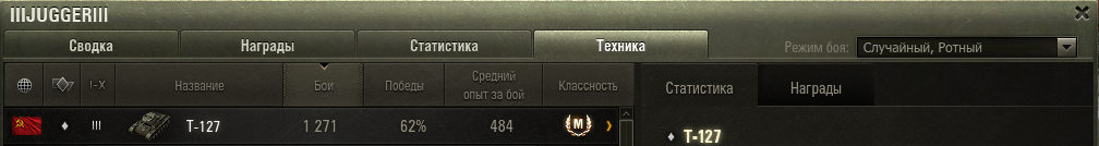 04.06.2015г. Всего сыграл 500 боев, а уже имеет Т44 и Т54 (другой