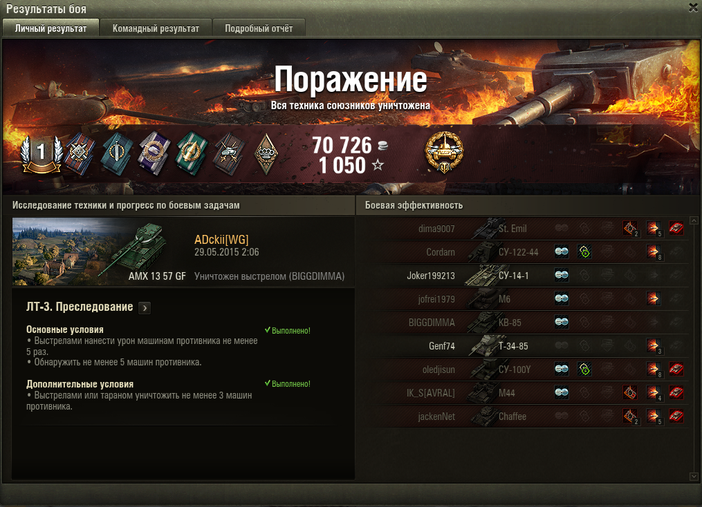 vladuslaw (29 Май 2015 - 02:04) писал: Взял лбз ст-9 - уничтожить тт на 2 уровня выше, сделал все, убил