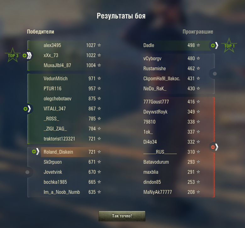 Просмотр сообщенияAlexLindre (28 Фев 2018 - 11:23) писал:   Мои поздравления!  В первой лиге освободится как минимум 7 мест свободных :trollface:   Ну еще чистку там проведите, а то порой до абсурда доходит. Хотя не ною, видел всего 5-10 персонажей за 200+ боев в ранговых.
