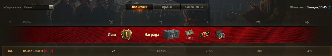 Просмотр сообщенияAlexLindre (28 Фев 2018 - 11:23) писал: Мои поздравления!  В первой лиге освободится как минимум 7 мест свободных :trollface: Ну еще чистку там проведите, а то порой до абсурда доходит. Хотя не ною, видел всего 5-10 персонажей за 200+ боев в ранговых.