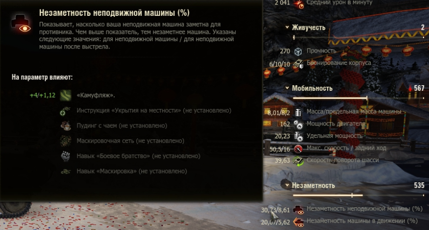 курсор мыши на один из показателей "Незаметности" и посмотрите