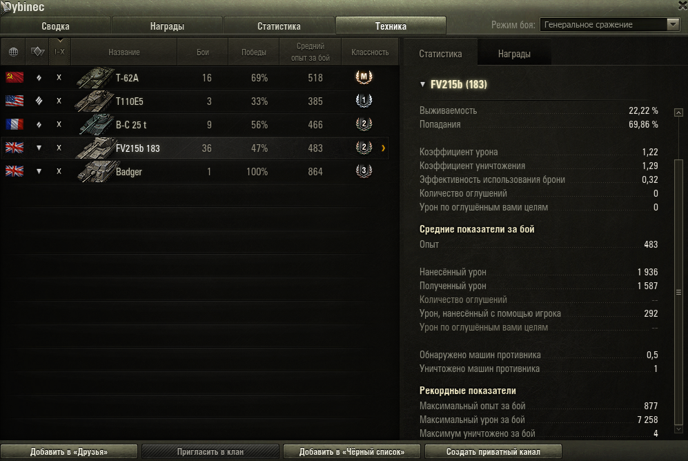 НО! Зашел в статистику танка ФВ183, и обнаружил что максимально