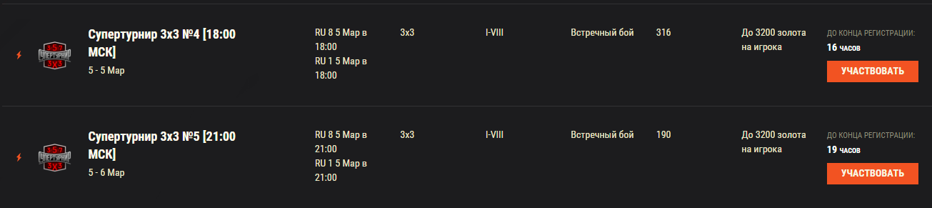 AMyPcKuu_JIeg (05 Мар 2016 - 09:56) писал: Добрый день! можно ли участвовать в нескольких турнирах в день?