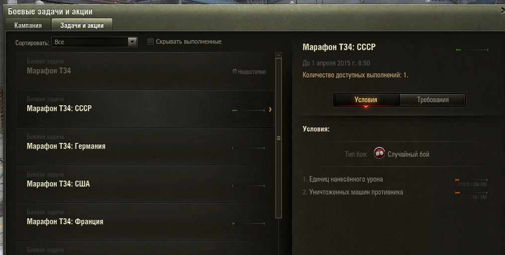 Тема: ?БАГ? с выполнением марафона на Т34