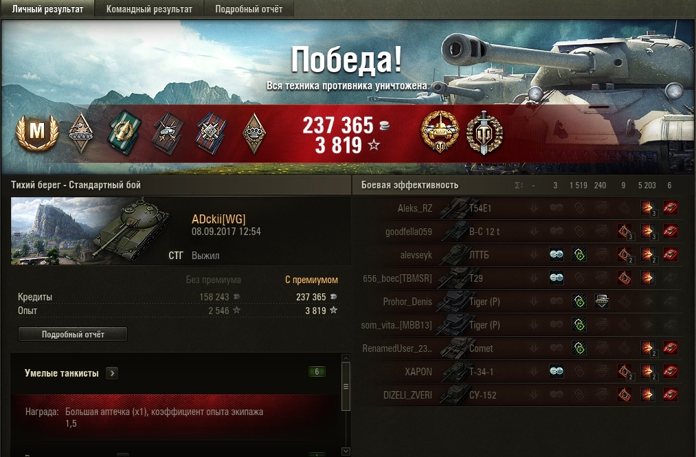 Просмотр сообщенияstasevich_85 (08 Сен 2017 - 13:43) писал: Ради рекламы нового према Аццкому отключили угнетатор :teethhappy: Как это иначе объяснить? Игрок средненький (типа меня) а тут бац (!!!) и выдает сессионку на преме8 со средухой 3к+:trollface: