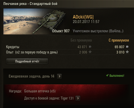 __Warrior_of_Light__ (19 Июл 2017 - 23:30) писал: Продам за серу, все таки неплохо 750к за танк и 300к+ за