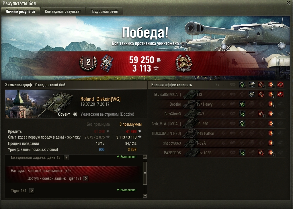 rubezhanin196 (20 Июл 2017 - 12:13) писал: Где икак получить танк Тигр131 боев выполнено 13 , подскажите