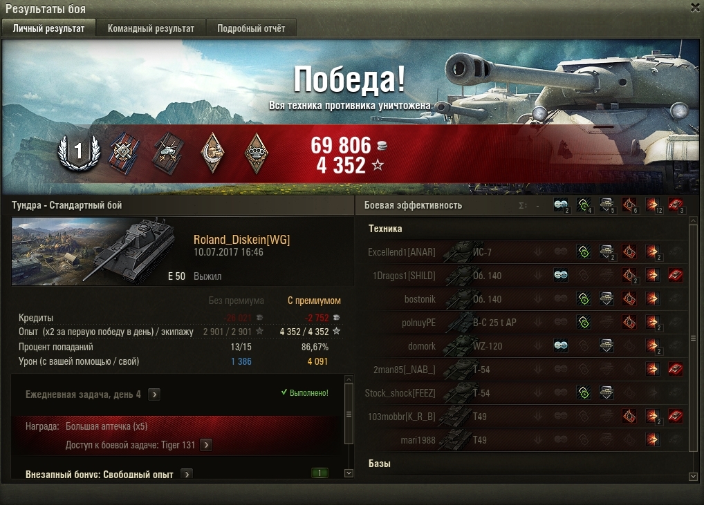 Просмотр сообщенияCoollNickname (10 Июл 2017 - 17:02) писал: У меня будет прем танк! За 4 года :)