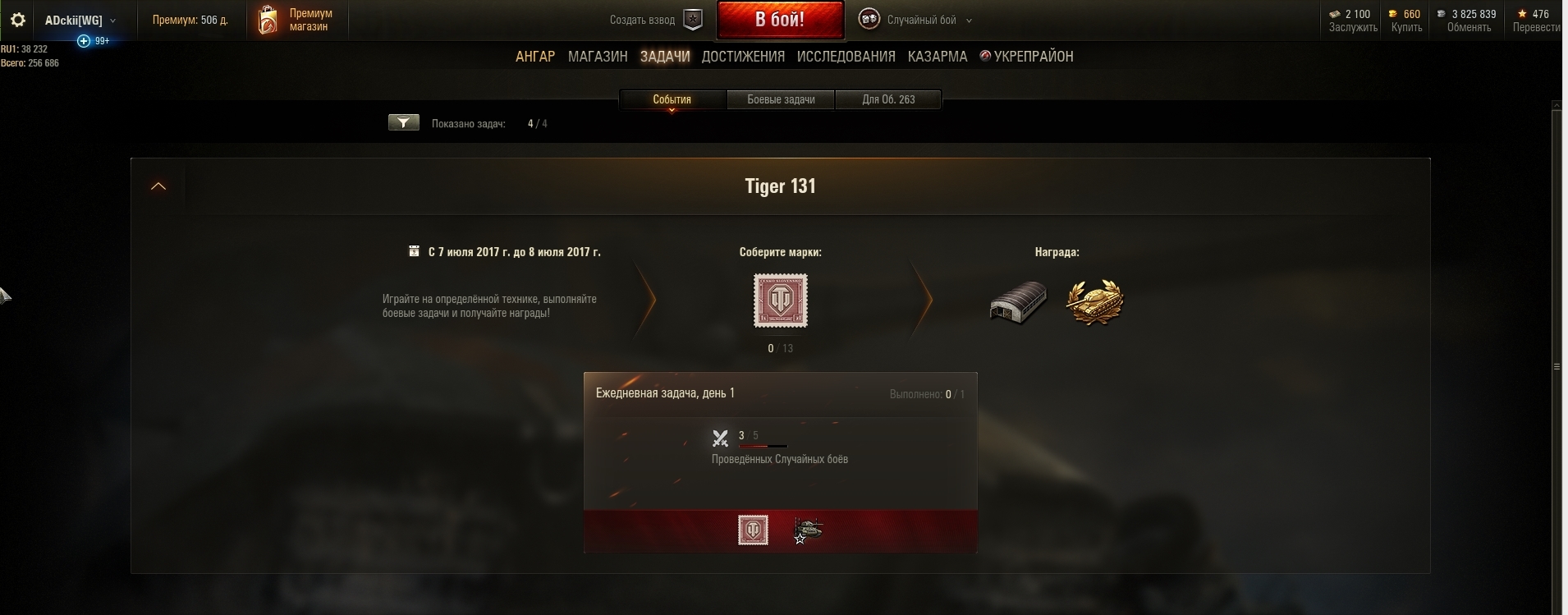 до этой даты). Вы выполнили 5 боевых задач. Для получения Tiger 131