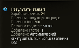Просмотр сообщенияTigra_ml (12 Июн 2017 - 12:50) писал: за получение 5-го ранга в ПЕРВОМ этапе!!!   Награды за наивысший заработанный личный ранг в этапе Для получения наград необходимо войти в клиент игры не позднее, чем через 180 дней после окончания этапа. Ранг I — 100 и контейнер со случайной наградой. Ранг II — 200 и контейнер со случайной наградой. Ранг III — 300 и контейнер со случайной наградой. Ранг IV — 400 и контейнер со случайной наградой. Ранг V — 500 и контейнер со случайной наградой.