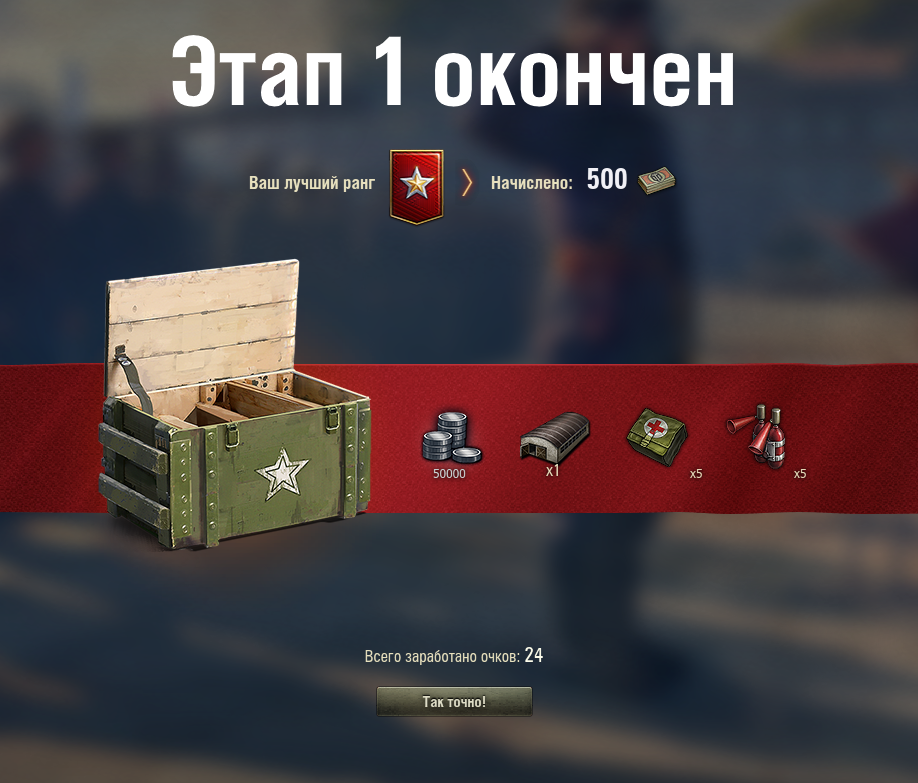 Вы получили награду за первый этап. Таковы условия всех этапов.