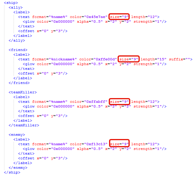Просмотр сообщенияObamaBanan (04 дек 2016 - 21:02) писал:   Добрый вечер. Подскажите пожалуйста, в файле конфигурации миникарты находятся  3 файла settings. В каком именно из них нужно изменить значение size(по умолчанию там 9 но это очень мелко) чтобы увеличить шрифт в названиях кораблей на миникарте? Мои глаза будут вам очень благодарны.