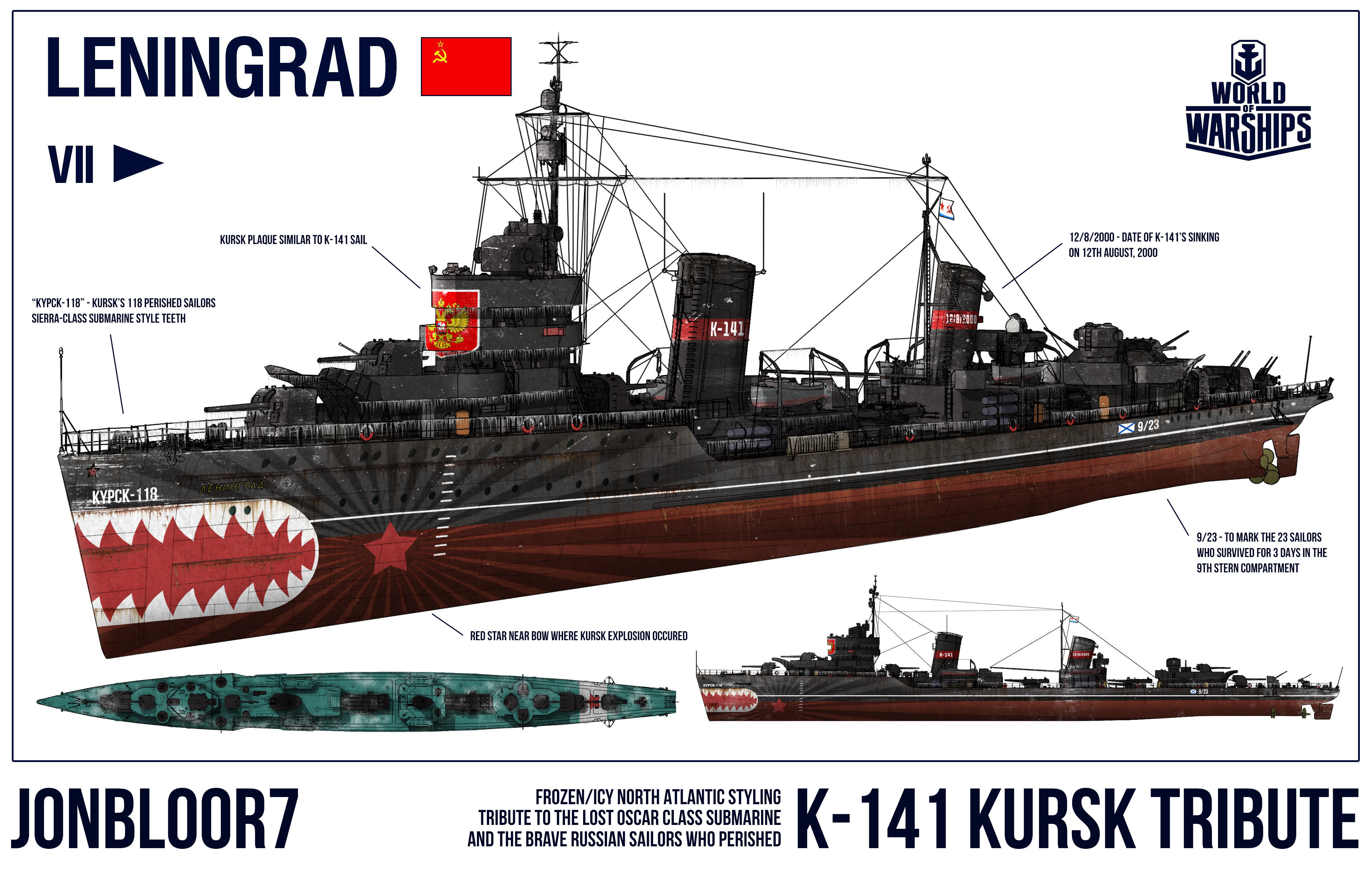 Nantess (11 Янв 2019 - 16:32): Интересно, буржуям объясняли в описании конкурса, что камуфляж К годовщине памяти событий, которые рубцом на сердце у миллионов людей!? Какой в топку "Lenin,s revolution" на советском лидере, который всю ВОВ челночил по Балтике ??? Это ... не крейсер "Аврора" и не броненосец "Потемкин". Если ЭТО будет в игре, Вы хоть понимаете какое это издевательство??? Это будет позор!