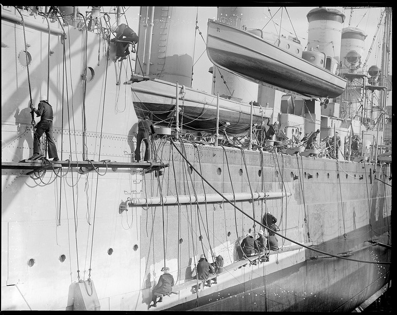 Jluca: Покраска лёгкого крейсера USS Raleigh (CL-7); Бостонская военная верфь; ~ 1930-е годы