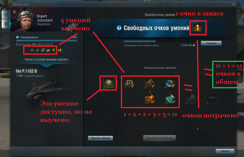 меня на 12 очков исследовано умений