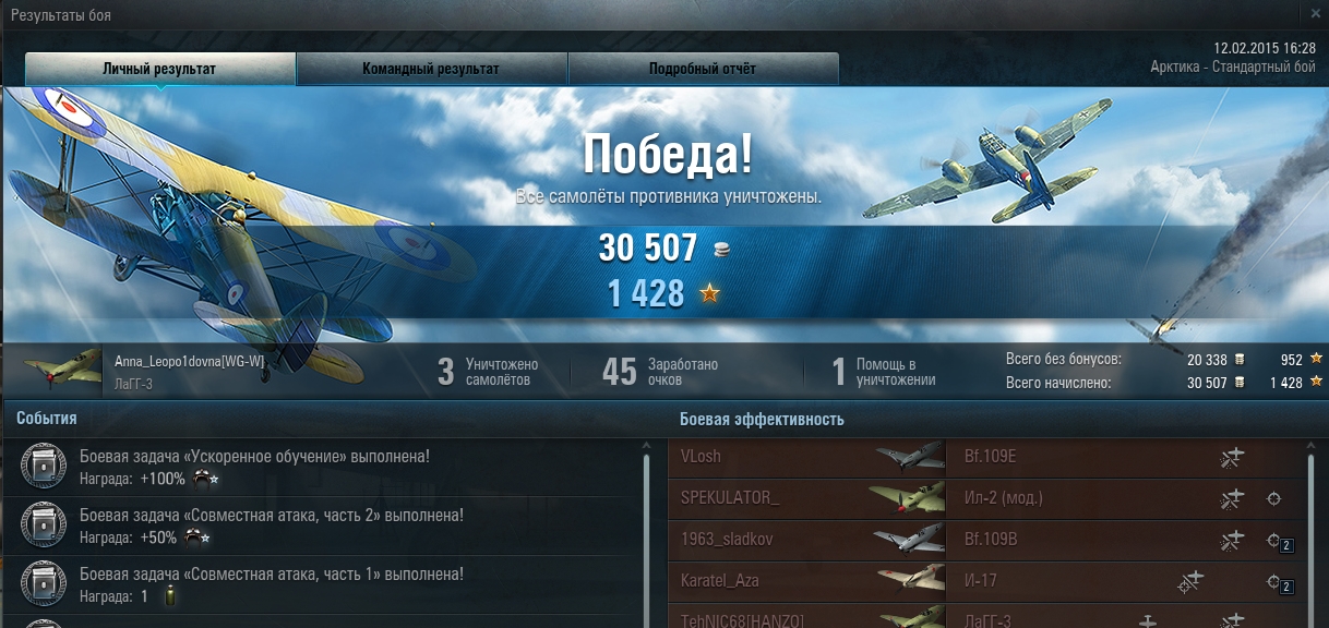 V, нужно было нанести урон по трем самолетам. Задание выполнила за