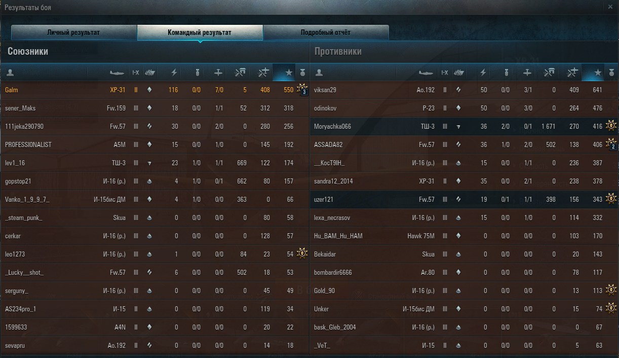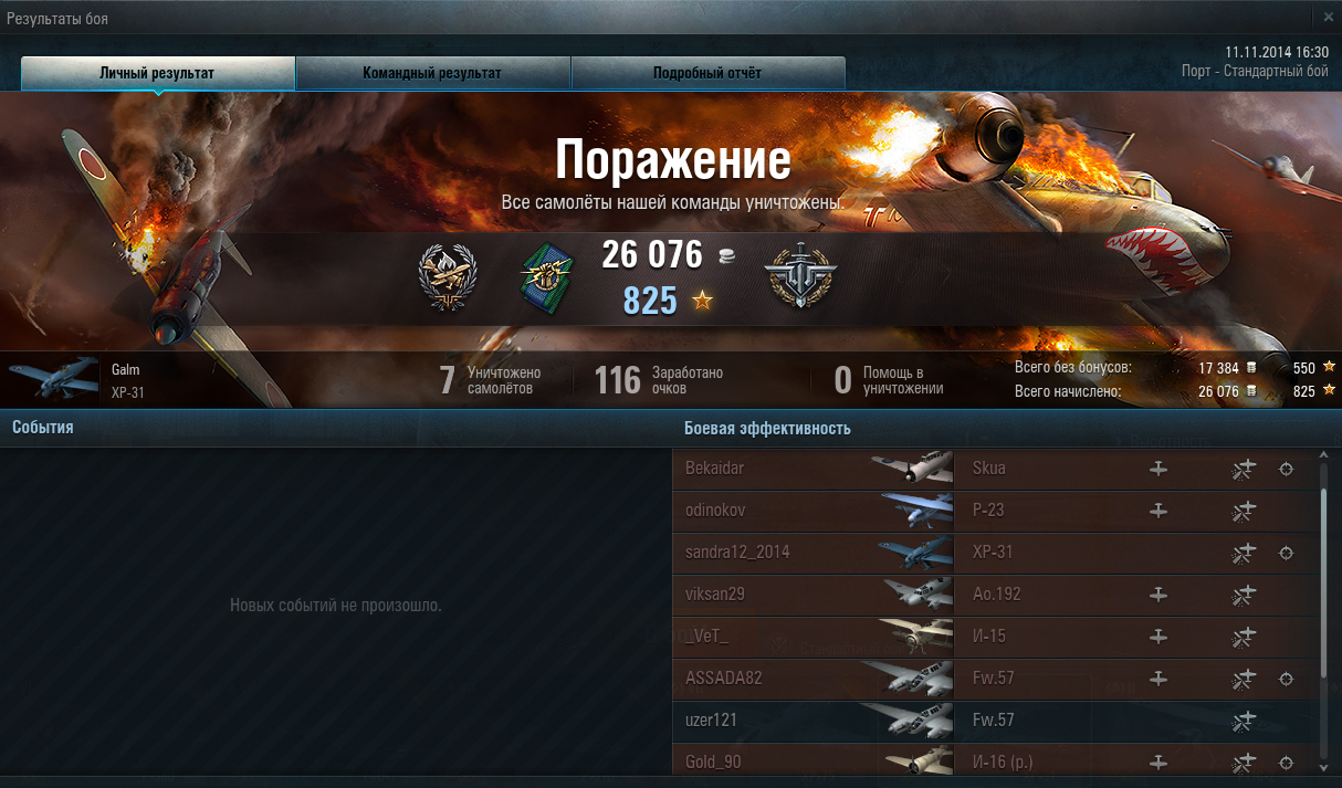 начисление опыта за сбитые, повреждённые самолёты, т.е. штурмы или